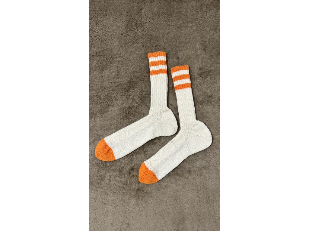 Design se třemi proužky a špičkou v kontrastní barvě je inspirovaný mojí láskou k vintage tenisové módě (a mou nejoblíbenější tenisovou ikonou všech dob — Richiem Tenenbaumem), sedmdesátkovou kulturou obecně, kterou mám snad nejradši, a také všemi těmi falešnými Adidas kousky, které byly všude kolem za mého dětství v Česku v 80. a 90. letech. Jsem si jistá, že někteří z vás přesně ví, co tím myslím… A v roce 1977 se narodil můj partner! Jak vám říkám — tyhle ponožky jsou jedna velká óda na lásku.
